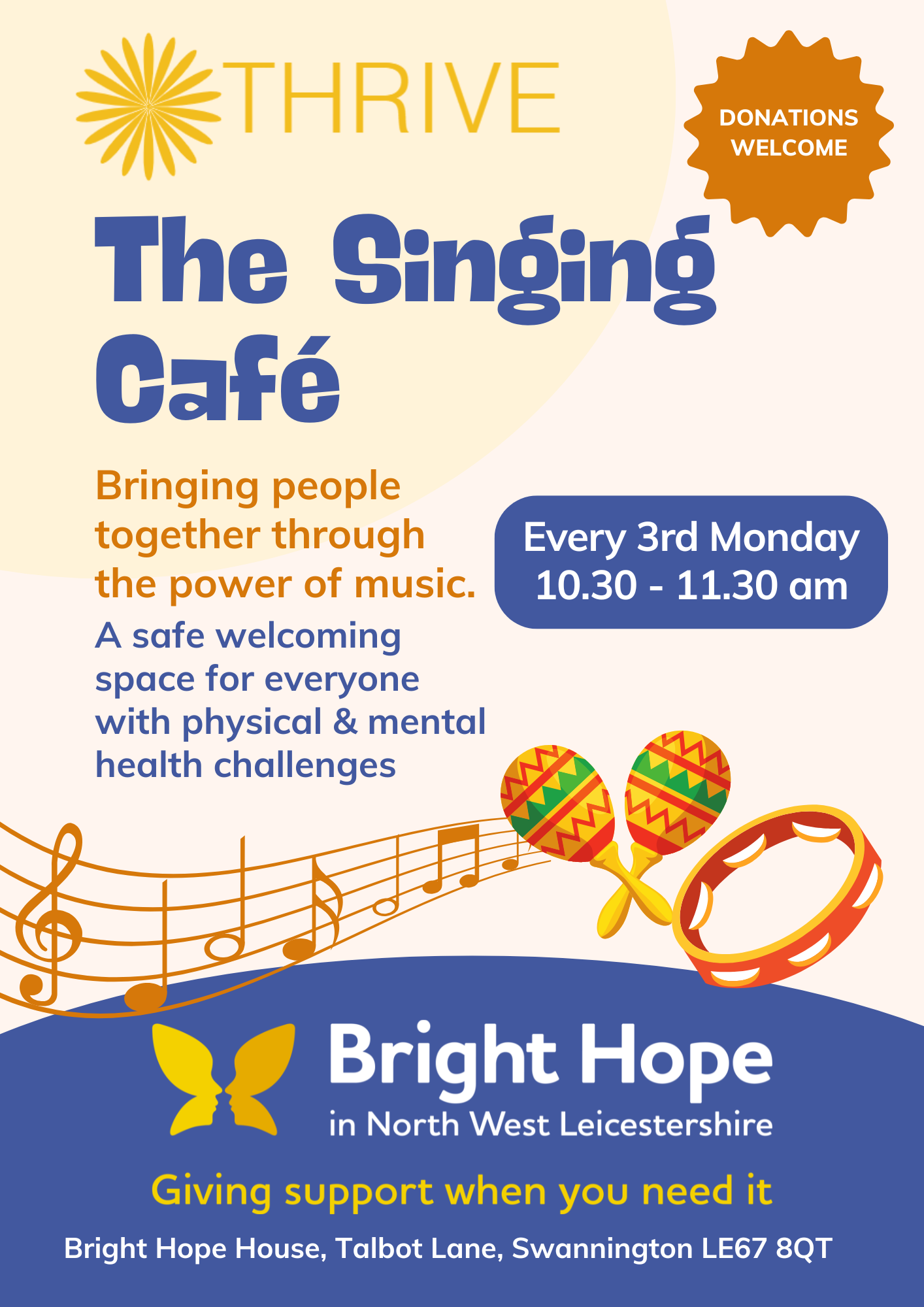 The Singing Café takes place on the third Monday each month at Bright Hope House from 10.30am until 11.30am. There is no need to pre-book.
